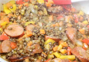 Polish Sausage and Green Lentil Sautéed Stew Recipe