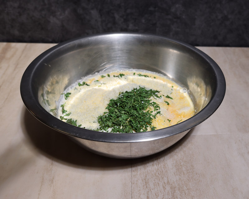 While the pasta is cooking, prepare the eggs. Crack the eggs into a medium sized mixing bowl. Whisk in the 1/2 C of cream. Season with a sprinkling of pepper. Add 1 tbsp of the cooled bacon drippings. Add half the grated cheese and incorporate well. The mixture should resemble eggs that have been whisked for a scramble or omelette.