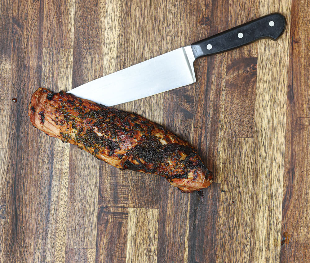 Slice your meat without pressing down on your knife too much. This is a delicate meat so allow for a clean cut agains the grain.