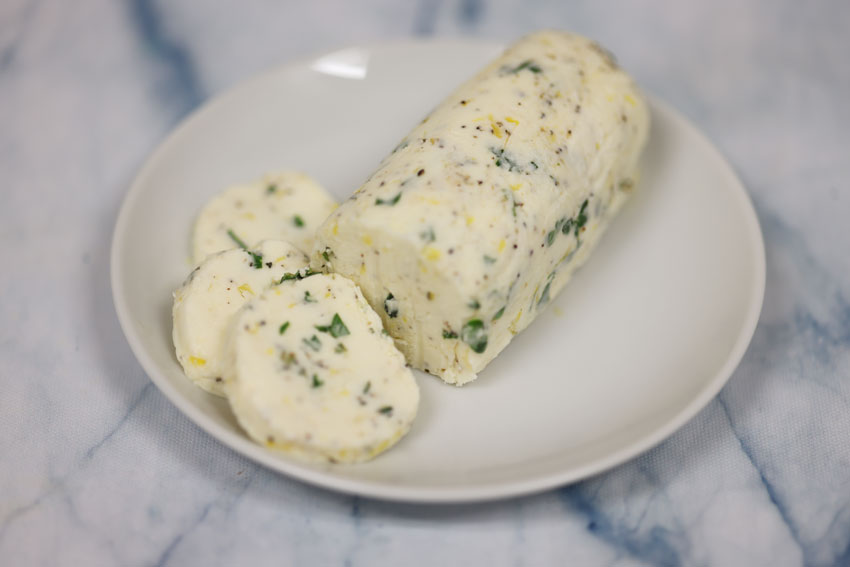 Once the compound butter has set and reached a solid consistency, cut into your desired sizes.